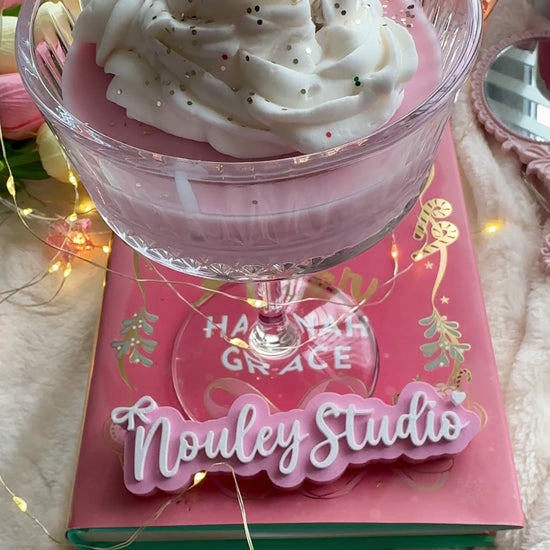Met haar champagne coupe-vormige glas, luchtige “whipped cream” swirl en subtiele glitters lijkt ze rechtstreeks uit een boekige high tea of winterromance gesprongen.